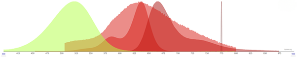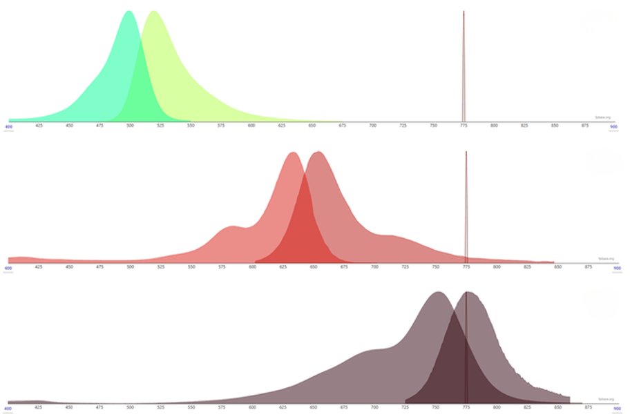 Obr.5: Spektrum kombinace Abberior STAR 520L a STAR RED. Laserová čára - 775 nm