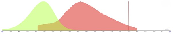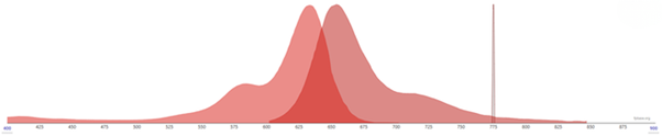 Obr.6: Ilustrativní graf spektra Abberior STAR 460L. Laserová čára - 775 nm