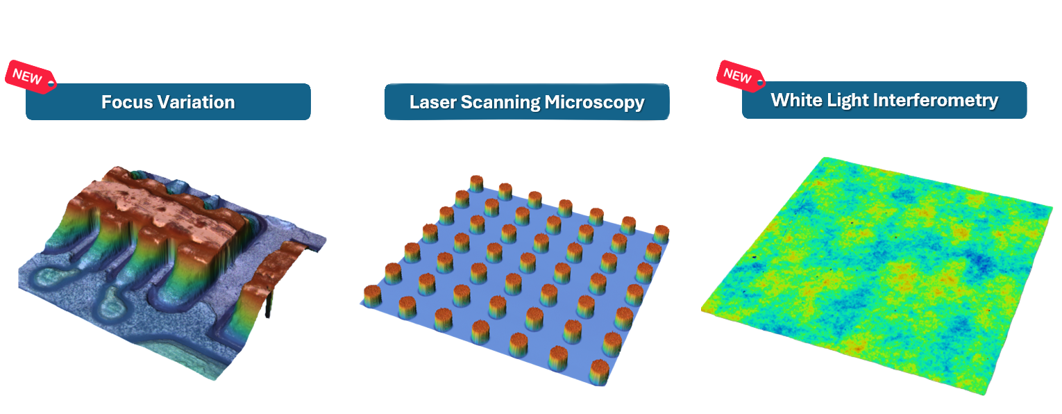 Hybridní 3D optický profilometr Evident LEXT™ OLS5500 spojuje laserovou skenovací mikroskopii (LSM), interferometrii bílého světla (WLI) a mikroskopii s proměnnou zaostřovací vzdáleností (FVM) do jedné výkonné platformy.
