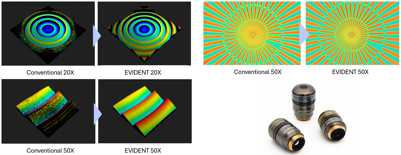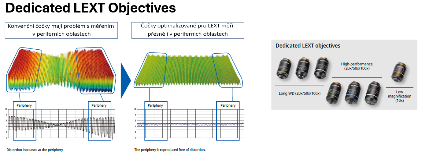 Ve srovnání s konvenčními objektivy umožňují objektivy s vysokou NA přesné zachycení složitých 3D tvarů a jemných bočních vzorů.