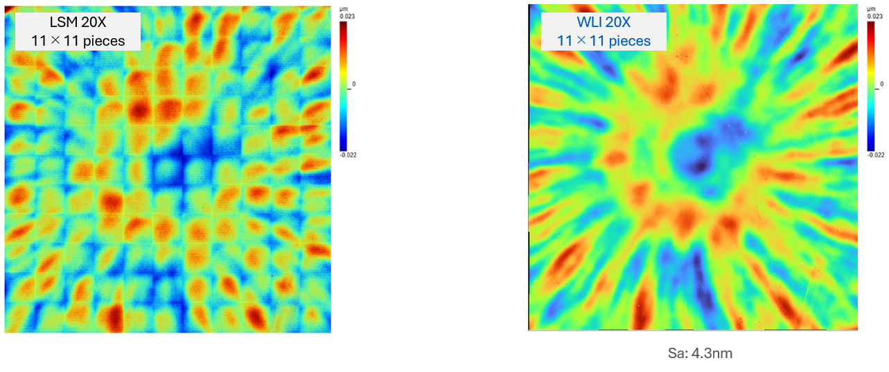 WLI umožňuje přesné spojování obrazů, a to i u vzorků v nanometrovém měřítku, což bylo pomocí konvenčního mikroskopu obtížné dosáhnout.
