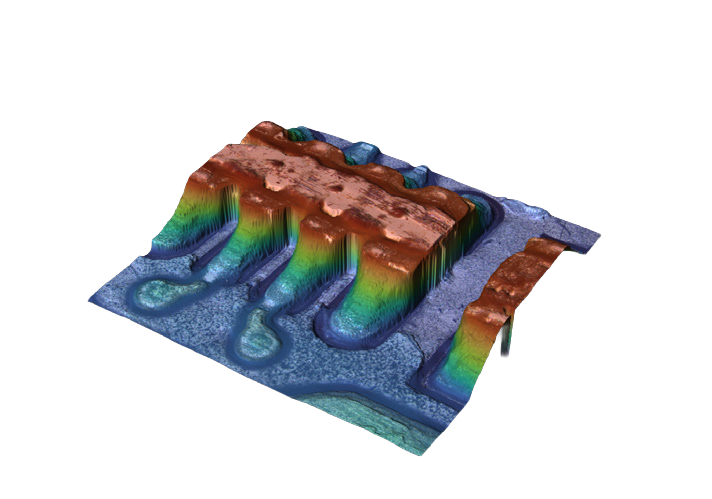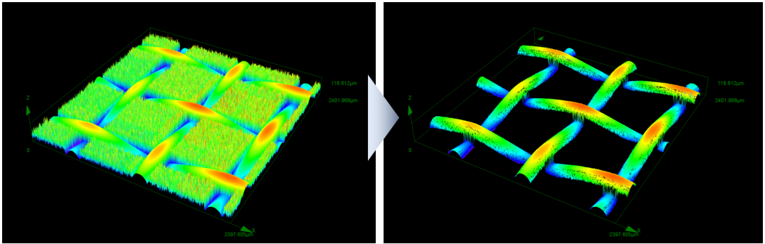 Algoritmus PEAK poskytuje vysoce přesná data od nízkého do vysokého zvětšení a zkracuje dobu získávání dat. Při měření tvaru hran na vzorku lze dobu získávání dat zkrátit přeskočením nepotřebného rozsahu skenování ve směru Z.