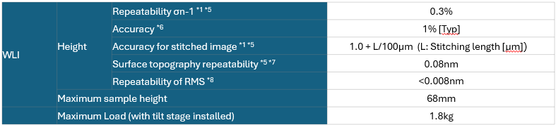 Interferometrie bílého světla (WLI) Vhodná pro hladké a nakloněné povrchy a pro měření kroků v řádu nm. Konstantní výkon měření výšky lze dosáhnout při jakémkoli zvětšení objektivu. |